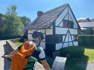 De eerste tocht is een deel van een grotere lus die loopt langs Barvaux, Wéris, Bomal en Sy. De totale tocht is ongeveer een 45 km en 920 hoogtemeter. Wij hebben enkel de lus gemaakt van aan onze chalet via Wéris, Bomal, Barvaux en terug naar de chalet. Dat was een tocht van 23,5km en 530 hoogtemeter.